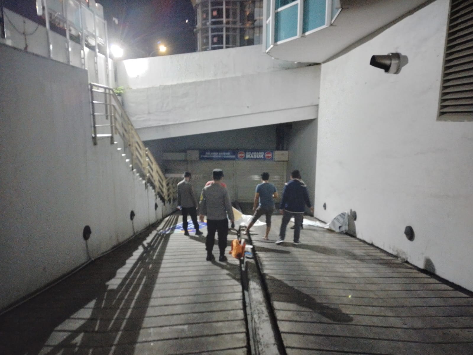 Nampak, jasad perempuan itu terkapar di jalur parkiran hotel. Terlihat perempuan itu mengenakan pakaian hitam dengan celana jeans berwarna biru.